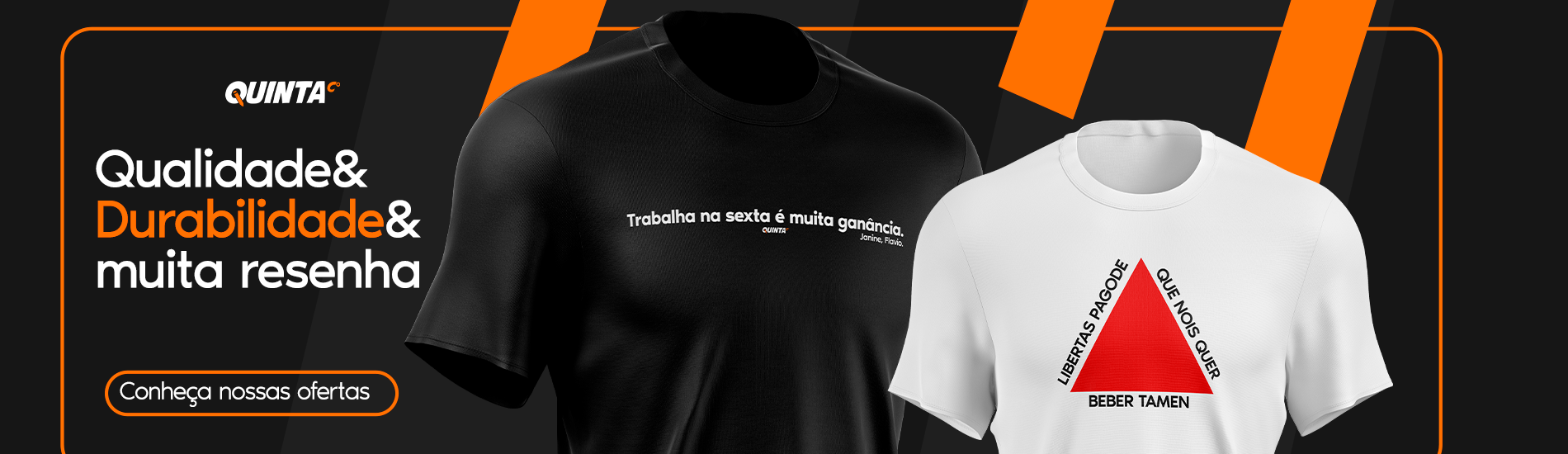 Cada modelo traz frases icônicas e divertidas que vão fazer você se destacar em qualquer ambiente, seja na balada, no rolê com os amigos ou até no dia a dia. Mas não é só a estampa que faz a diferença! As camisetas da Quintac são feitas com tecido premium, que garante um toque macio e super confortável, além de garantir durabilidade e resistência, mesmo após várias lavagens.